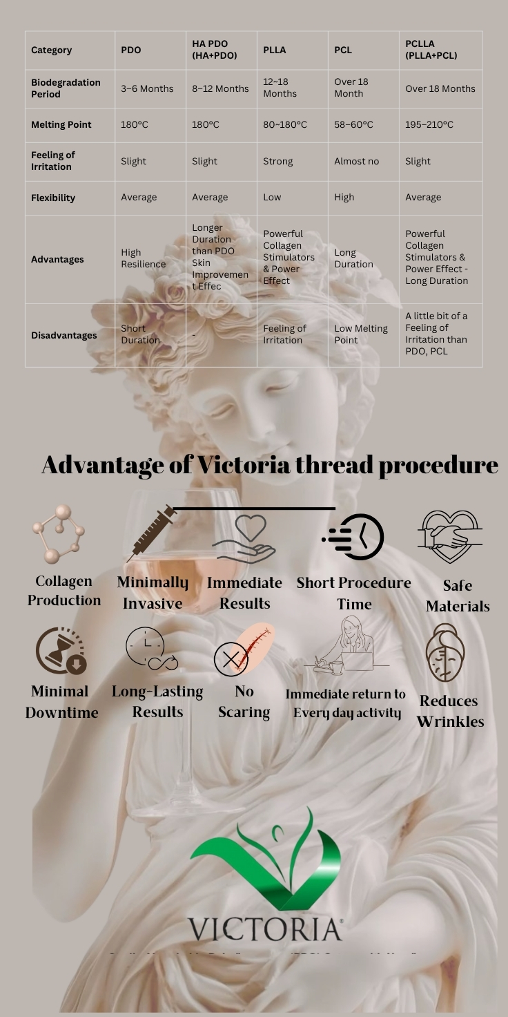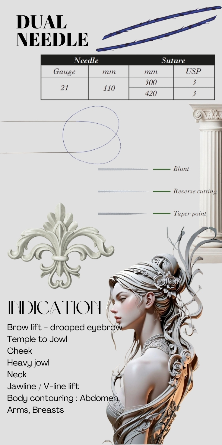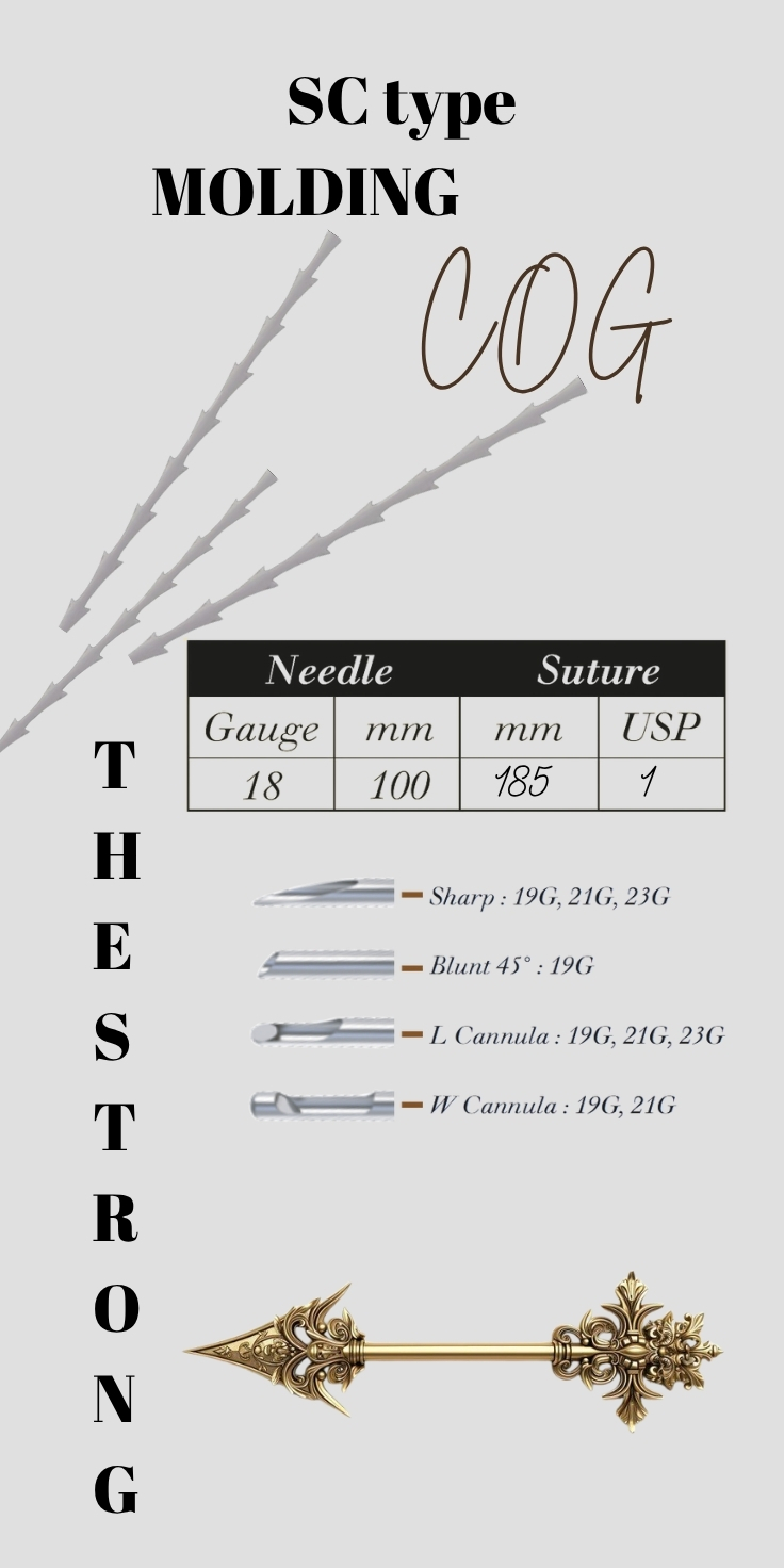 Specialized in PDO, PLACL and PLLA · Various selections in size and type to meet customers' needs · A strong focus on improving quality from product to product such as unique application for cog (barbs) – proper cut angle, optimizing thickness of incision, maximizing tension of thread and anchoring capacity